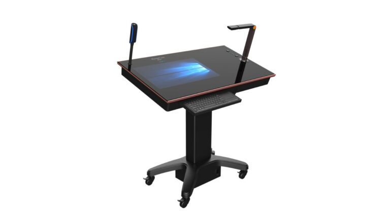 Der Ultrakurzdistanzbeamer ist oberhalb der Tafel montiert, dadurch entsteht nur ein sehr geringer Schattenwurf. Selbstverständlich wird der Projektor bei der Höhenverstellung mit bewegt.