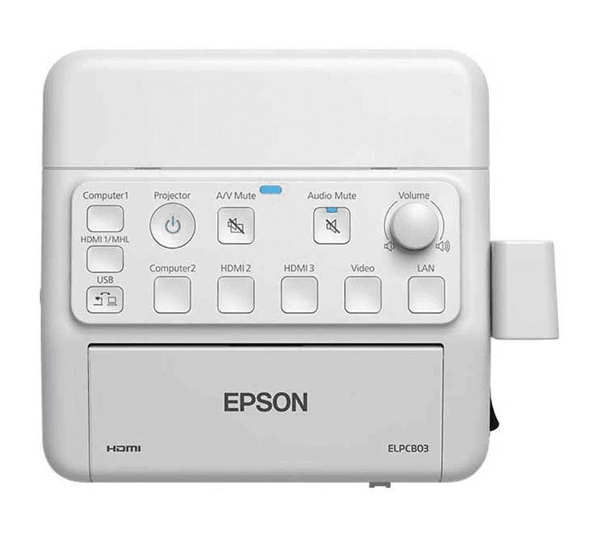 Außerdem stellt diese Lösung mit ihren Tasten alle Funktionen einer Fernbedienung zur Verfügung. Somit kann der Projektor vollumfänglich bedient werden.