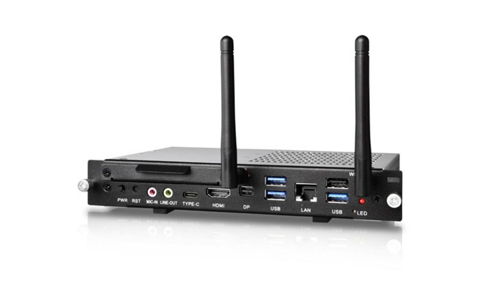Häufige Bezeichnungen sind Slot-PC bzw. OPS-PC (Open Pluggable Standard). Wie Standard-PC werden auch diese Einschub-PC nach der Wunsch-Ausstattung des Kunden geliefert. Der Verzicht auf eine Verkabelung ist ihr großer Vorteil. PC und Touch-Display bilden ein Gesamtsystem.