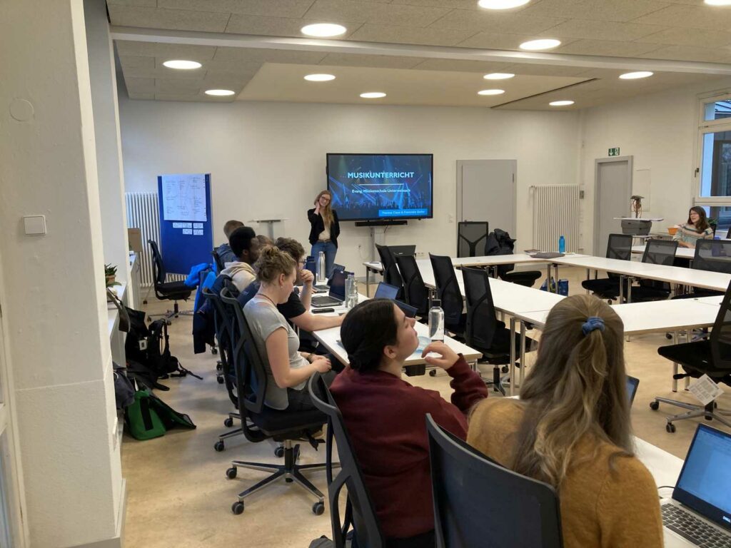 In einigen Unterrichtsräumen wurde die vorhandene Installation „Beamer mit Leinwand“ durch Interaktive Touch-Display ersetzt. Besonderen Wert wird auf die drahtlose Kommunikation gelegt (egal ob Apple, Android, Windows). Damit können Dozenten und Studierende die Inhalte ihrer digitalen Endgeräte (Notebook, Tablet, Smartphone) problemlos auf das Touch-Display spiegeln und so die Inhalte für alle Anwesenden sichtbar machen.