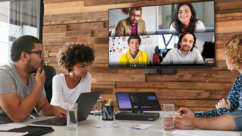 Durch das ThinkSmart Hub werden Meetings effizienter denn je zuvor: One-Touch-Meeting-Start, Display, Lautsprecher, Mikrofone, usw.