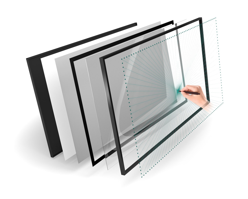 Dank Bonded Glas („Zero-Gap“ dry bonding) entfällt zudem der sonst übliche Luftspalt zwischen Panel und Touchoberfläche. Das sorgt für ein hervorragendes und realistisches Schreibgefühl, vergrößert den Betrachtungswinkel und reduziert Reflexionen.